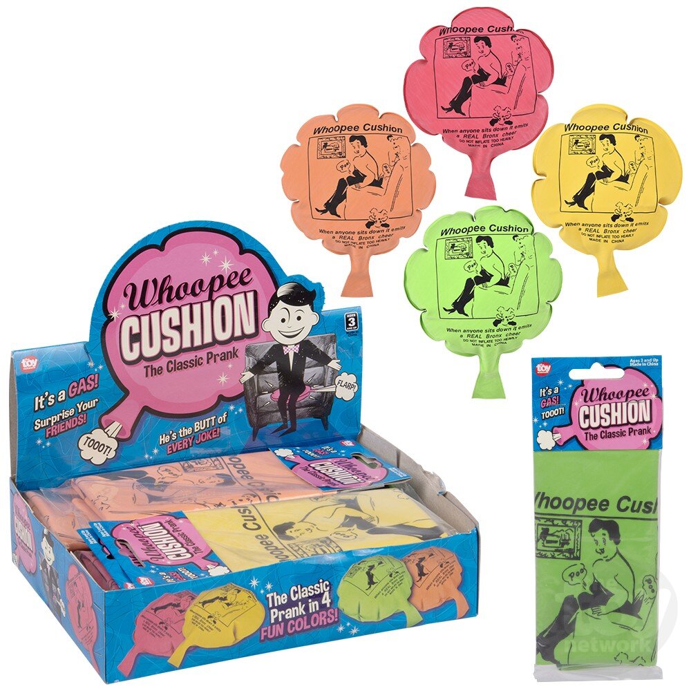 The classic six inch whoopee cushion. Inflate & secretly place on someones chair and wait to hear the magic unfold. These Whoopee Cushions are a classic gag toy great for making funny fart sounds.