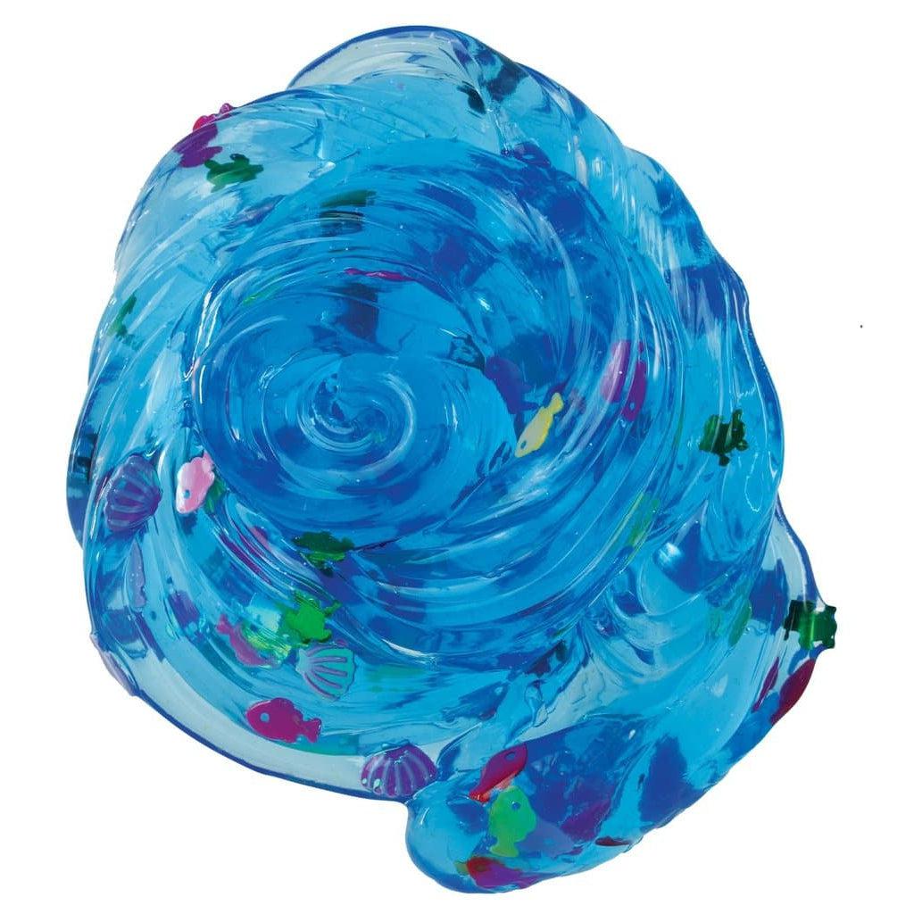 All hands on deck! Time to set sail and take a journey through the Seven Seas! Stretch and squish your way through the ocean waves and explore the wild ocean life below with the sea life clay pieces in this clear-blue putty. Great for playing with other small toys.