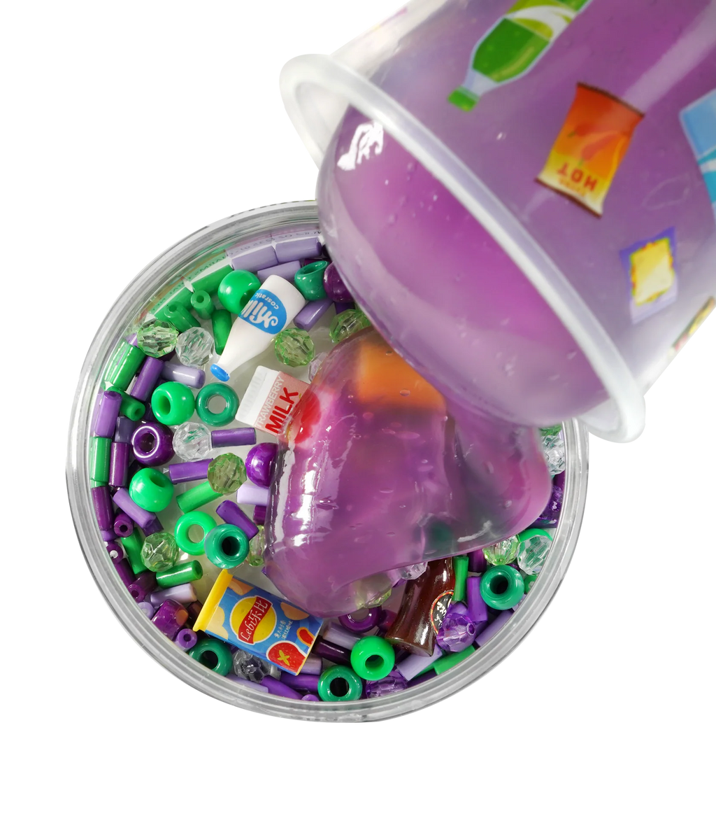 Look no further, we got what you need with the new Crazy Aaron’s® Slime Charmers™ Mini Mini Mart.  Looking for soda, we got it.  Milk, no problem…its all here in this classic purple slime.  Pick what you need or grab everything you can and mix it to create a unique slime shopping experience.  Fill your slime and charms to the top of the shopping cart with Slime Charmers™ Mini Mini Mart.