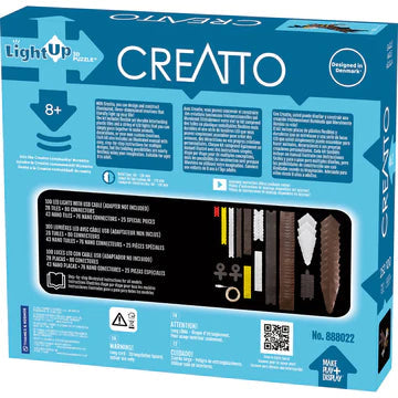 With 252 Creatto pieces and a string of 100 LED lights, you can build a majestic bald eagle with a three-foot wingspan, a grizzly bear, a bison, and a skunk. Lights powered by USB cable; USB power adapter not included. Suitable for ages 8 and up.