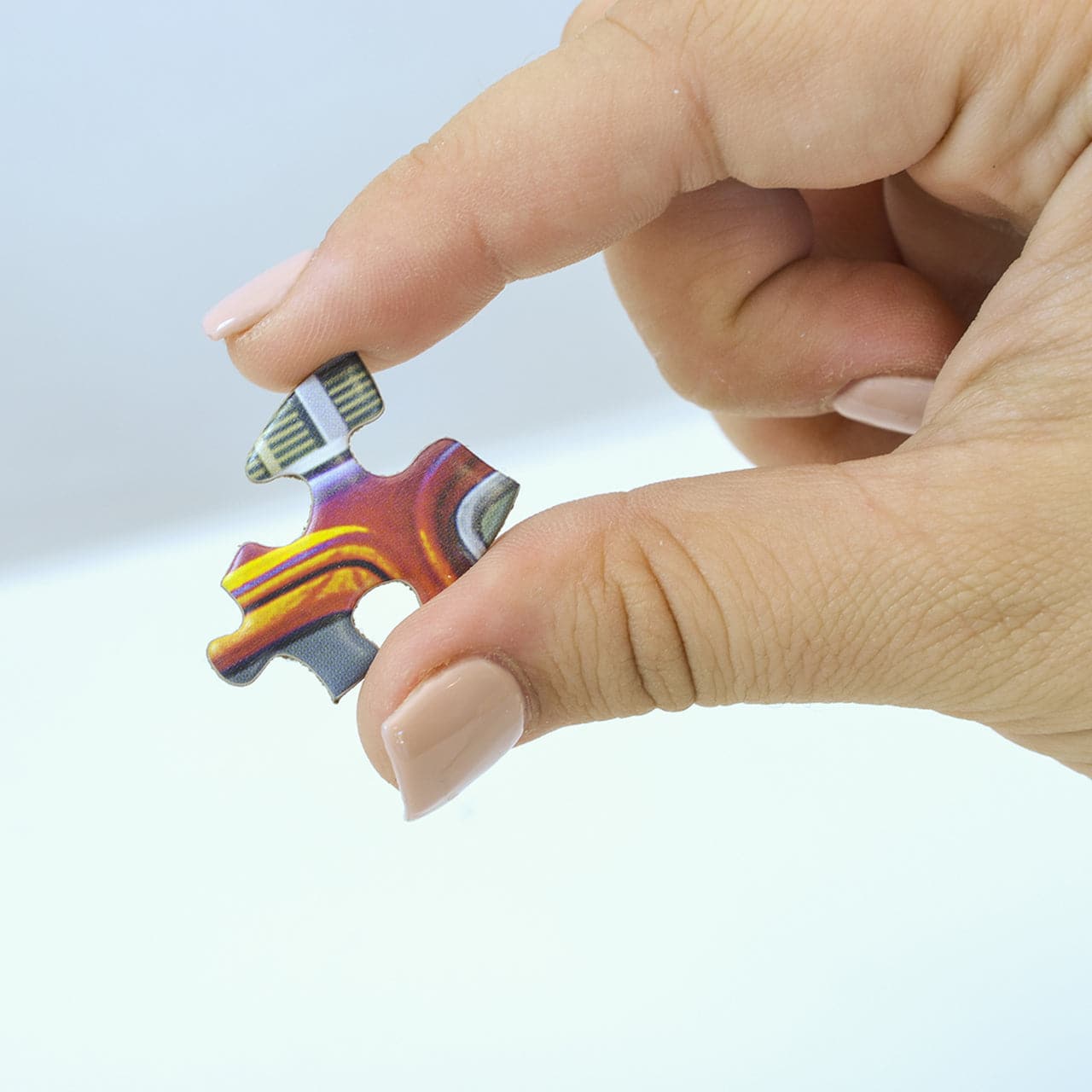 Through inspiring messages and bright prints, Dean Russo's work is sure to brighten anyone's day. Each puzzle has extra large pieces for a fun and quick night of puzzling with the family or group of friends. The EZ-Grip technology used to make this puzzle offers larger puzzle pieces that snap together perfectly, without compromising image quality. To reduce its impact on our environment, the chipboard used in this puzzle is made of recycled material.
