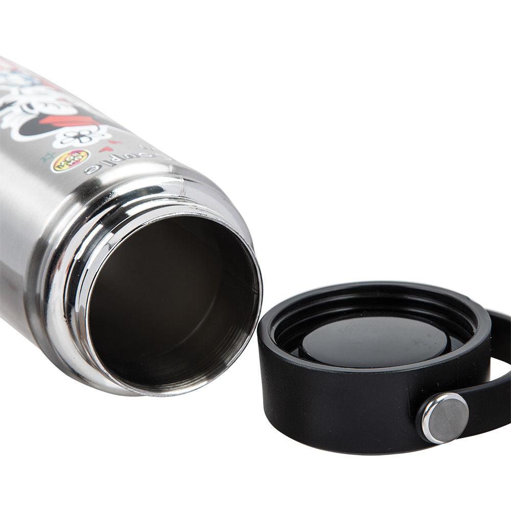 Celebrate your love for the ultimate couple with this Mickey and Minnie Mouse water bottle. The full-color artwork really brings Mickey and Minnie to life. With this water bottle's spill-proof sport lid, leakage and spills will be a thing of the past. The high-grade stainless steel makes this Disney water bottle a durable and long-lasting accessory.
