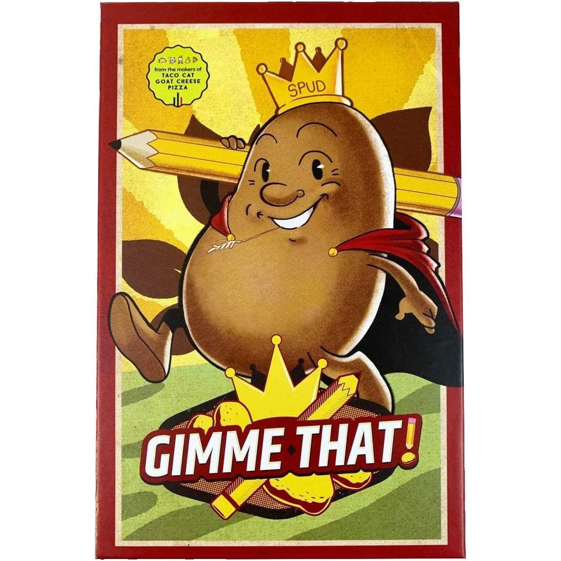 Gimme That! is the wild potato mashing, high frying, pencil grabbing party game. As a new recruit for the Bureau of Spud Management, your assignment is counting potatoes. But – watch out! Everyone else has the same job and there’s only one pencil. Will you be the next Spud King?