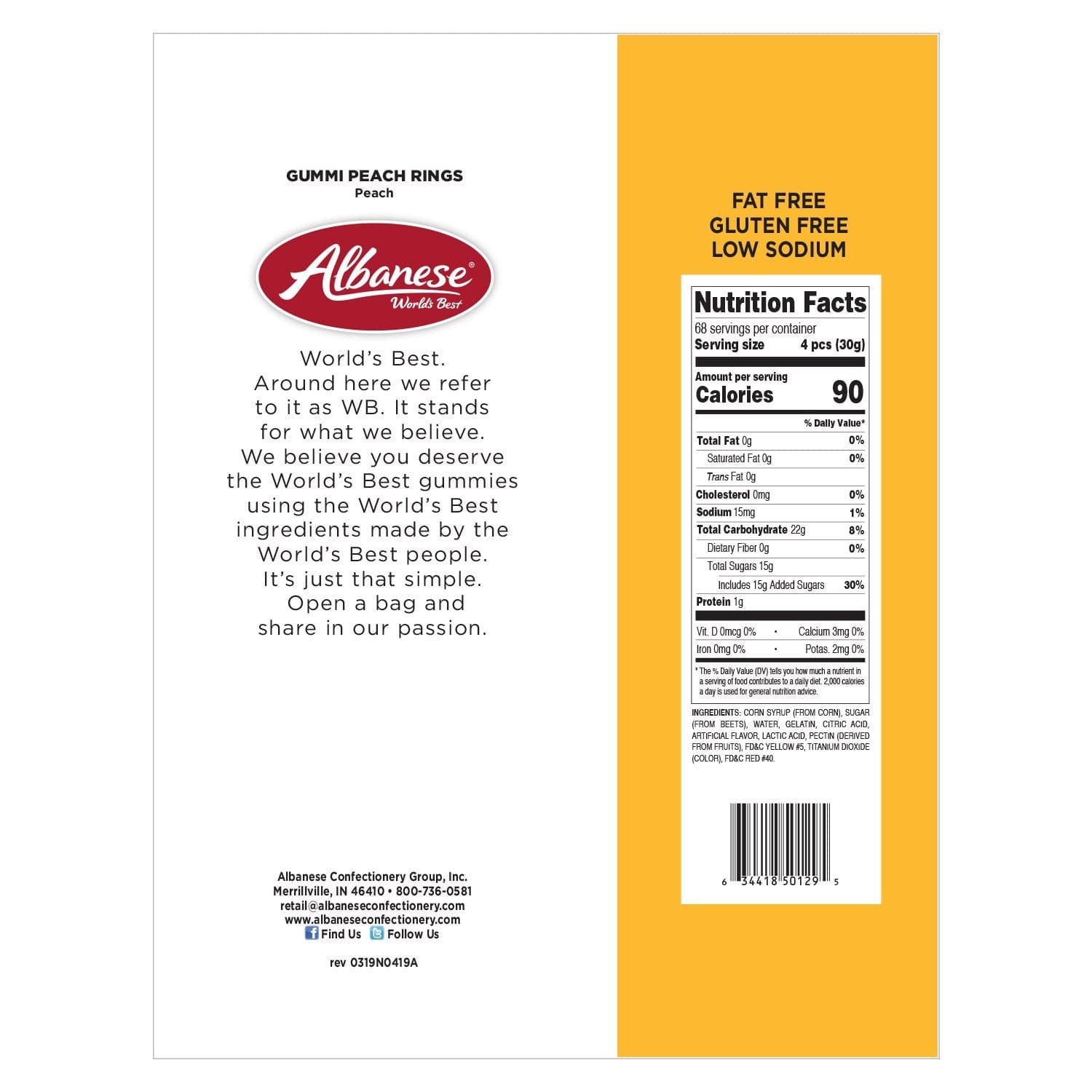 - Stock up with a 4.5-pound bag of Albanese Gummi Peach Rings.
