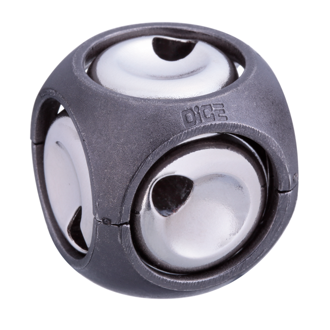 Three pieces with spots on them, look almost ready to tumble free from their dice-inspired frame. However one piece coming out draws another one inside, making it hard to get a handle on this teaser of a puzzle.
