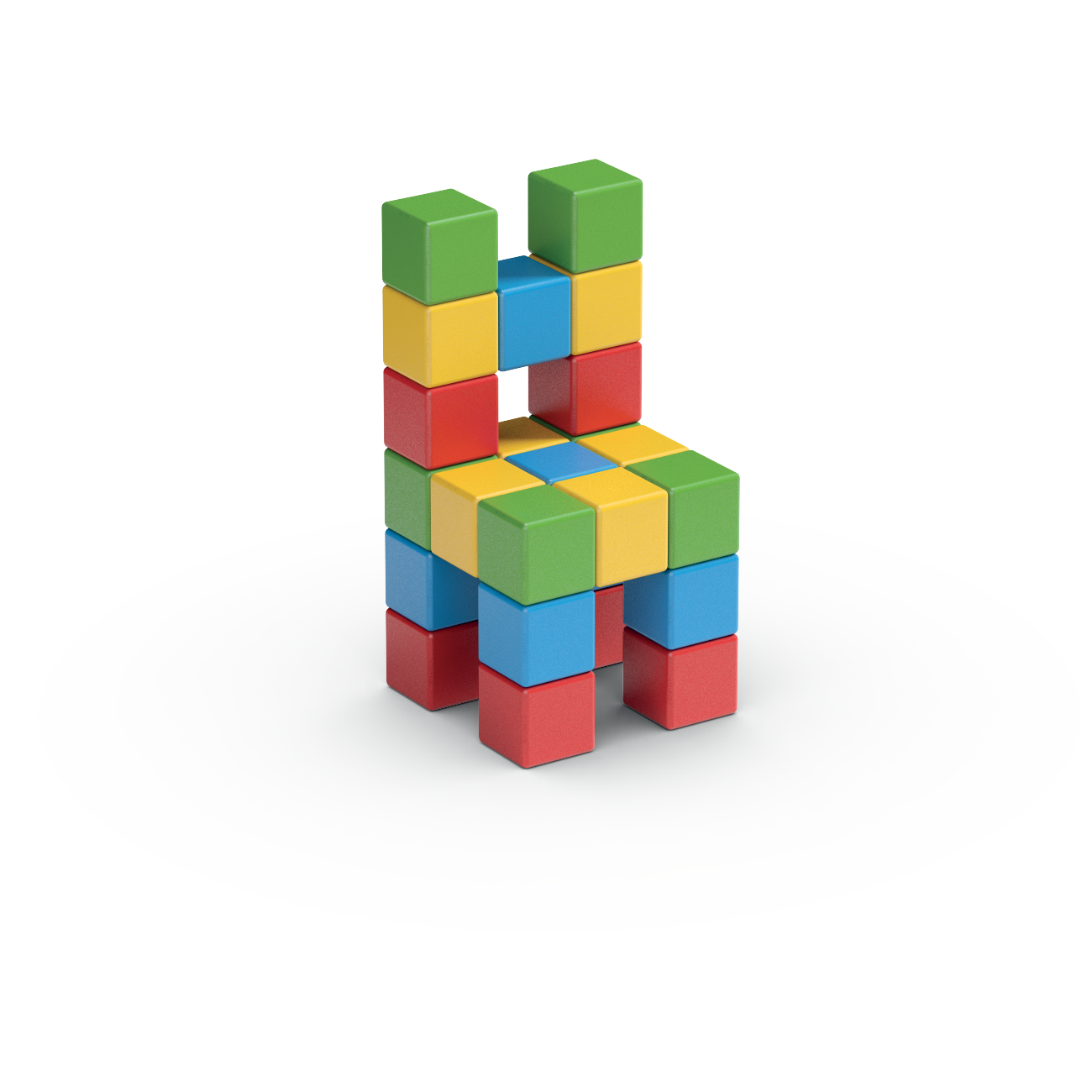 Each colourful cube can be attached from any side and allows you to build, in a fun and easy way, 3D structures and new shapes.