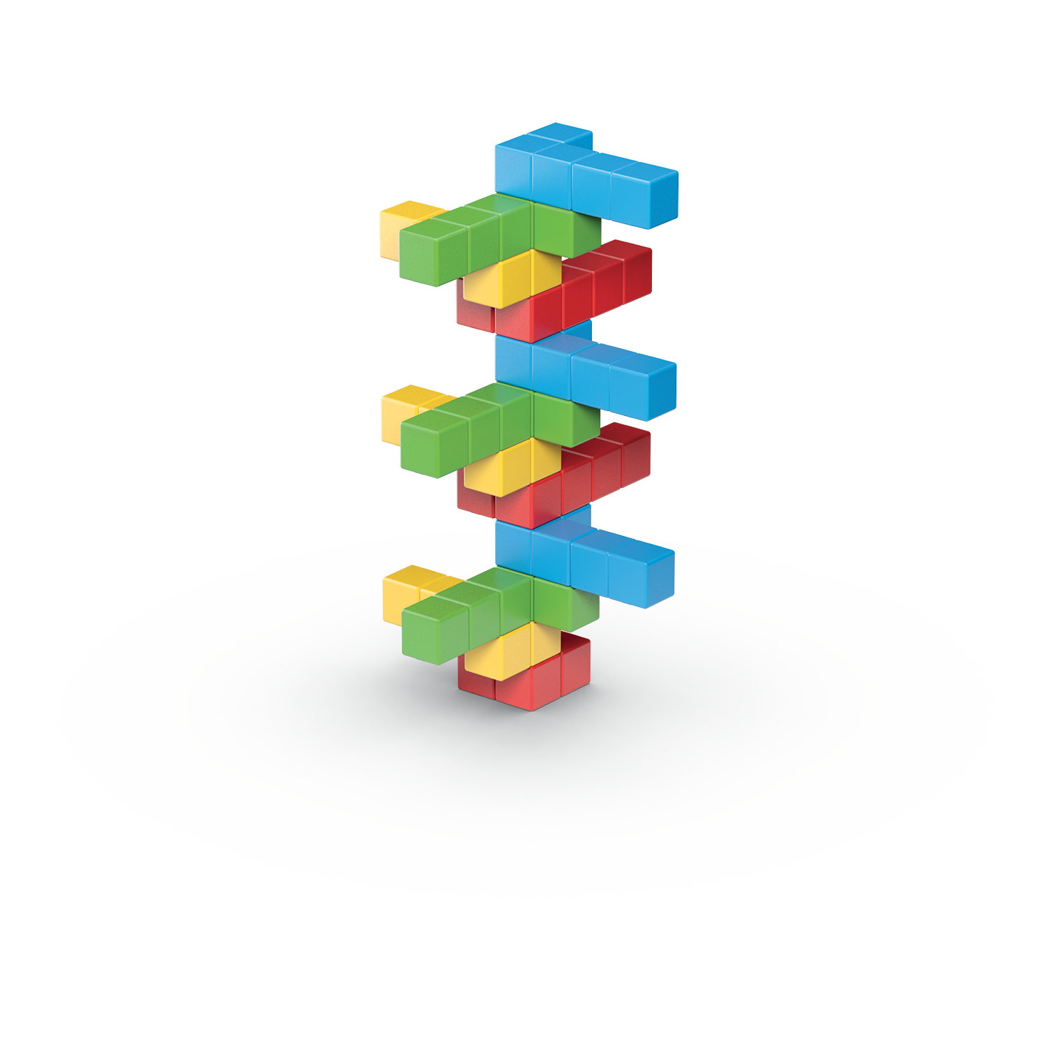Each colourful cube can be attached from any side and allows you to build, in a fun and easy way, 3D structures and new shapes.
