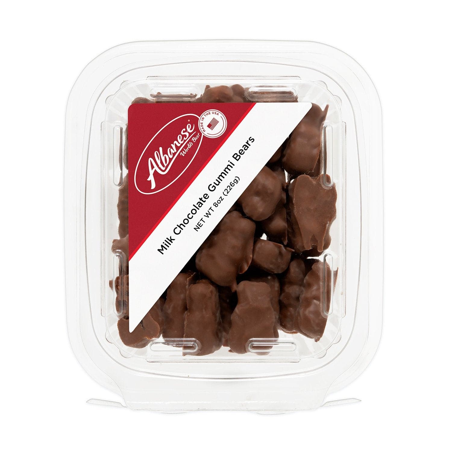 Our Gummi Bears took a big dip! We generously coat each bear in creamy Albanese Milk Chocolate for a perfect flavor combination! Each mix features an assortment of Orange, Strawberry-Banana, Cherry, Strawberry, Marshmallow, and Apricot Gummi Bears