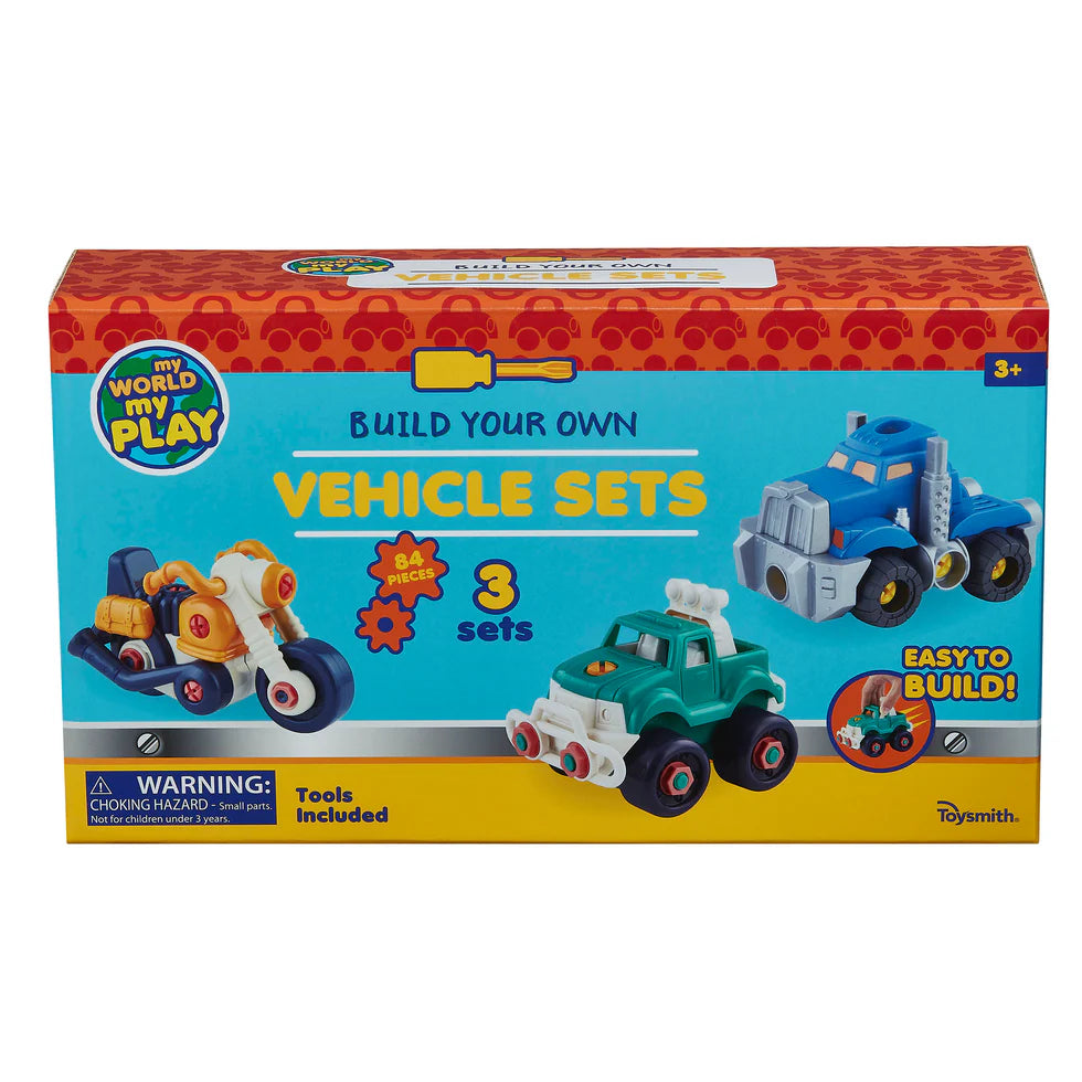 The Build Your Own Vehicle Sets by Toysmith offer a hands-on building experience for kids aged 3 and up. With 84 colorful pieces and included tools, children can assemble three different vehicles: a motorcycle, a green truck, and a blue truck. The set encourages creativity and fine motor skill development. Each vehicle is easy to build, making it perfect for young learners exploring basic construction and engineering concepts. This engaging toy set promotes problem-solving, imaginative play, and confidence as kids build and rebuild their favorite vehicles. Ideal for solo or group play, it’s a great addition to any playroom or classroom. Whether for fun or educational use, this set delivers hours of entertainment while supporting early STEM learning through interactive, skill-building play.