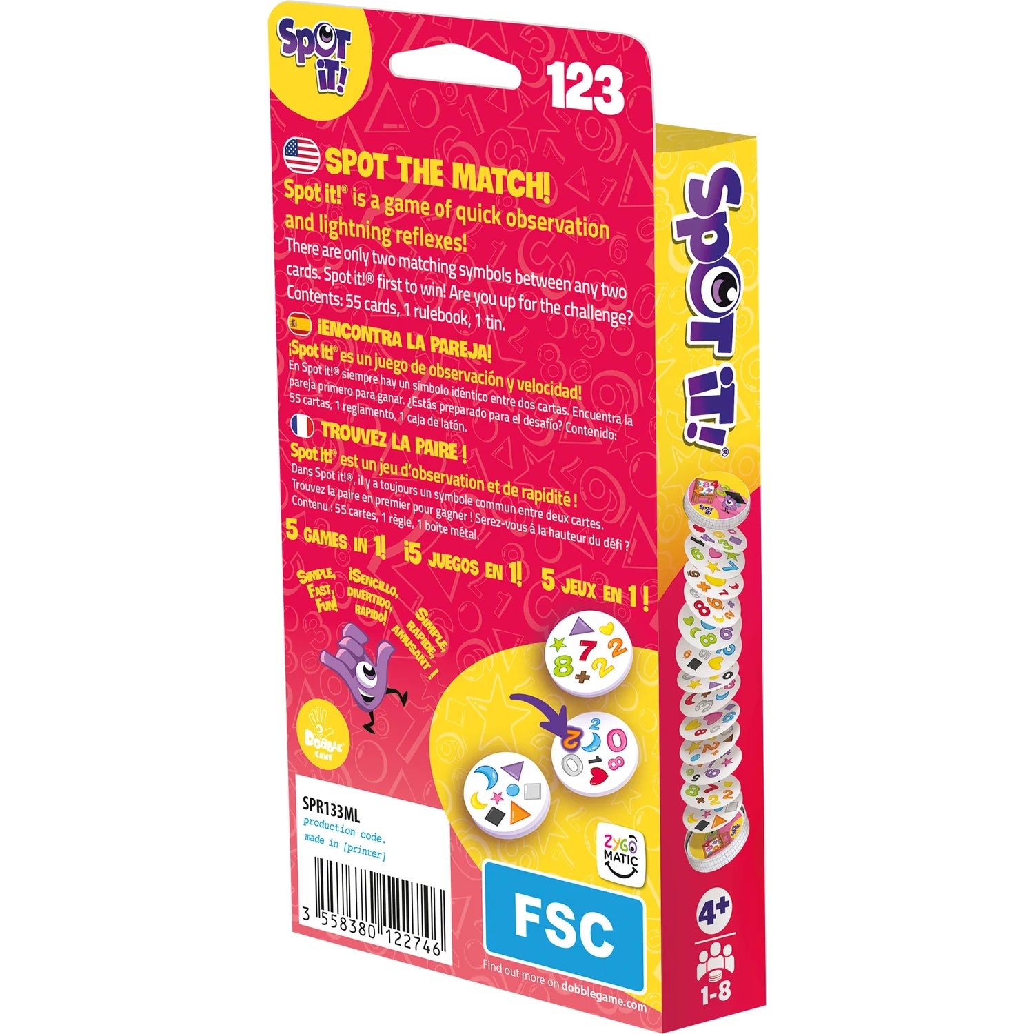 • FOR AGES 4 AND UP: Designed for kids and adults, Spot it! 1,2,3 is a great way to improve focus, observation, and quick thinking while having fun.